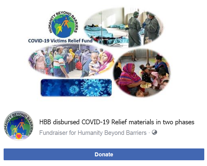In Phase I in the beginning of the pandemic, 1,000 Personal Protective Equipment (PPE) for frontline health workers and physicians distributed in Bangladesh public hospitals in Bangladesh and also, meals were provided locally (greater Sacramento area, California) for vulnerable seniors in COVID-19 pandemic crisis. In phase II, HBB helped in providing Winter Shelter of homeless people in addition to providing meals to vulnerable seniors locally and providing Basic Food Package and Hygiene Relief to feed the hungry and saving thousands of life in most vulnerable underprivileged families across Bangladesh. About 10 projects were launched (https://www.